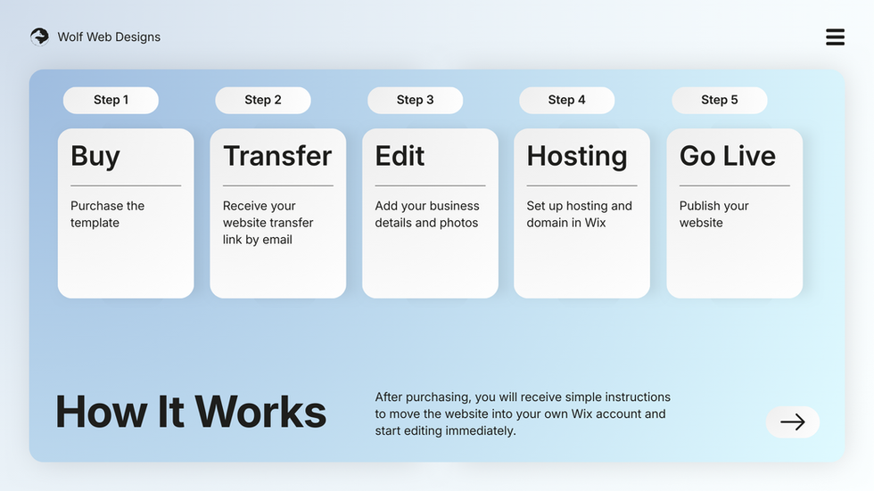 After purchase, the website is transferred directly into your Wix account where you can edit the text, images and contact details to suit your business.